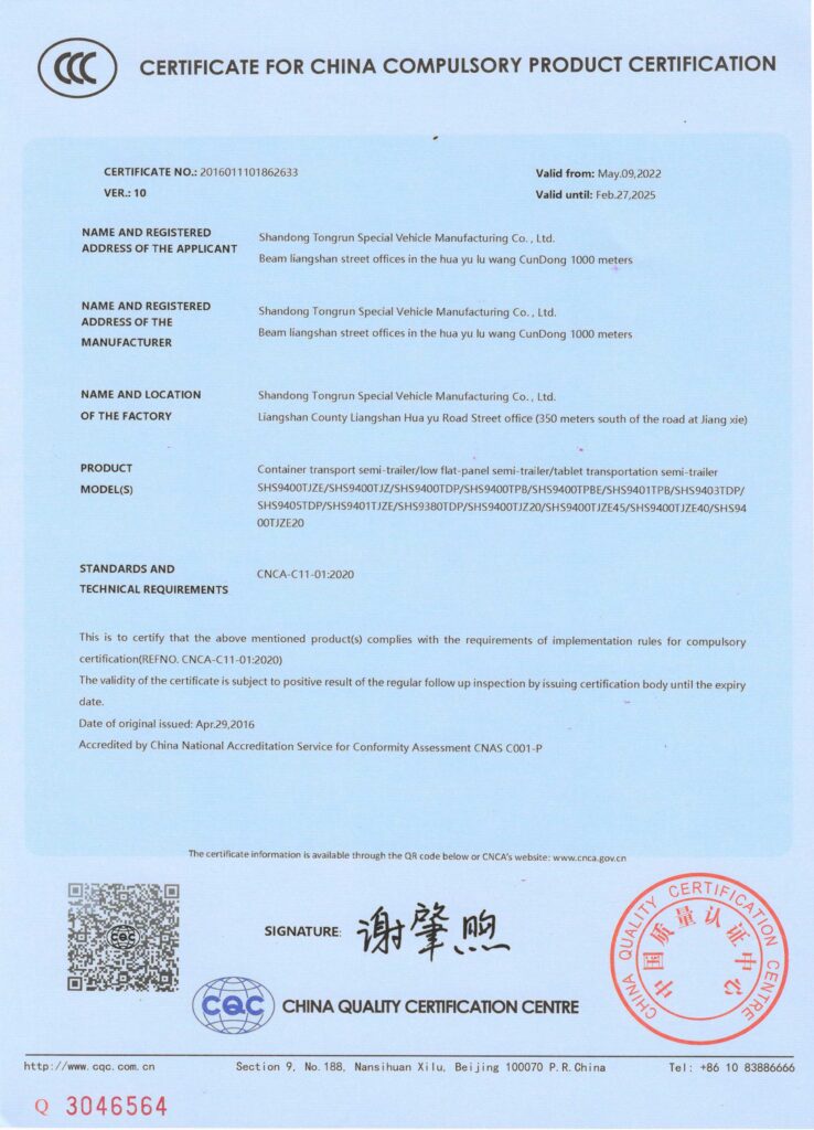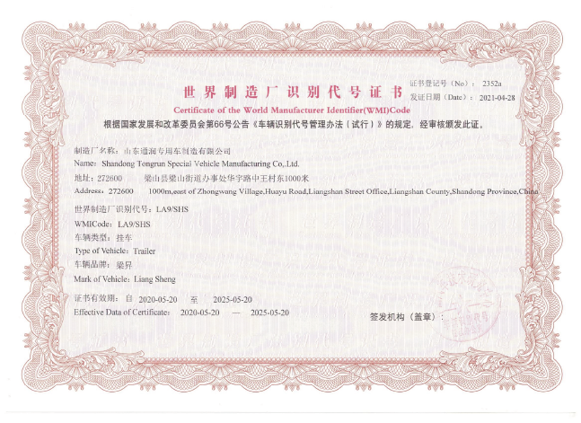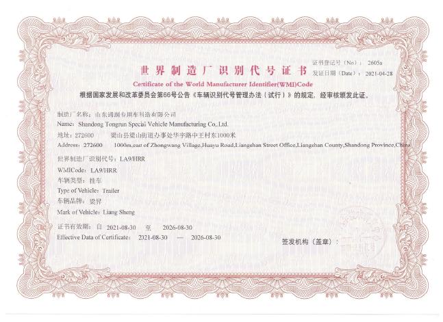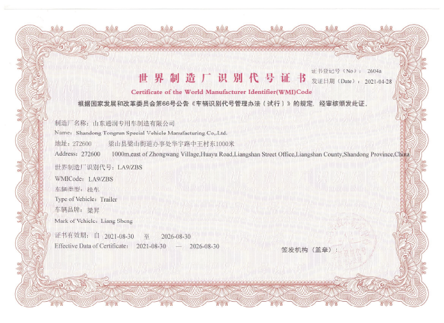 The company has introduced high-precision and cutting-edge professional equipment, adopted advanced processing technology, selected high-quality raw materials and parts, and passed the "CCC" certification of the China Quality Certification Center and ISO9001:2000 quality management system certification. The series of products produced by the company, including full trailers, semi-trailers, skeleton trucks , low-bed trucks, container trucks, van trucks, curtain-side trucks, etc. , have reached the domestic leading level.